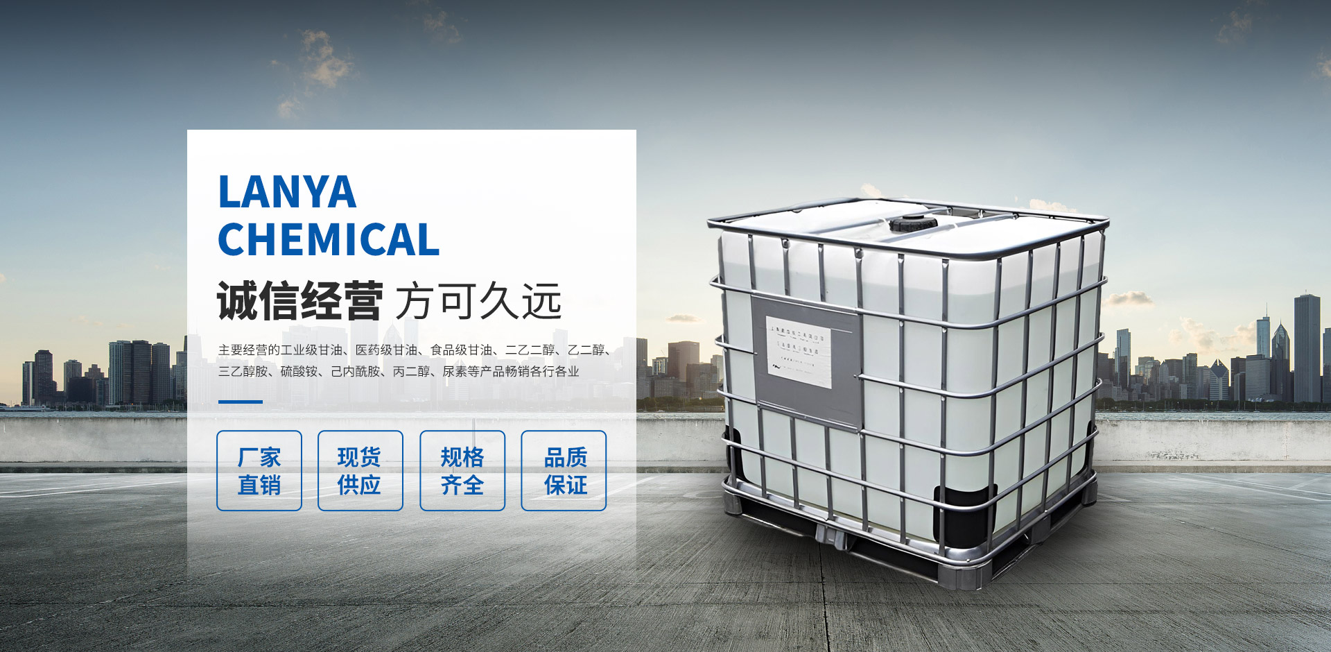 常州藍亞新材料科技有限公司是一家集技術(shù)研發(fā)、技術(shù)服務(wù)、生產(chǎn)加工、經(jīng)銷批發(fā)為一體的化工經(jīng)營企業(yè),擁有完整、科學(xué)的質(zhì)量管理體系,以雄厚的實力、低廉的價格,優(yōu)良的服務(wù)與多家企業(yè)建立了長期的合作關(guān)系。我們有很廣泛的商品信息網(wǎng)絡(luò),合作伙伴遍及世界各地,我們在“質(zhì)量為先”的經(jīng)營理念指導(dǎo)下,經(jīng)過全體員工的不懈努力,以經(jīng)取得了令人矚目的成績,并擁有一支業(yè)務(wù)精通、操作能力強的骨干隊伍。公司實力雄厚,重信用、守合同、保證產(chǎn)品質(zhì)量,產(chǎn)品品種齊全、價格合理,以多品種經(jīng)營特色和薄利多銷的原則,贏得了廣大客戶的信任。 藍亞化工,主要經(jīng)營的工業(yè)級甘油、醫(yī)藥級甘油、食品級甘油、二乙二醇、乙二醇、三乙醇胺、硫酸銨、己內(nèi)酰胺、丙二醇、尿素等產(chǎn)品暢銷各行各業(yè),在各大企業(yè)當中享有較高的地位。公司與多家加工廠、零售商和代理商建立了長期穩(wěn)定的合作關(guān)系。本公司的二乙二醇、工業(yè)級甘油、三乙醇胺等液體散裝有機化學(xué)品品種齊全、價格合理,廣泛用于各行各業(yè)。 公司位于目前中國具活力的長江三角洲地區(qū)有發(fā)展?jié)摿Φ某鞘小V荩乩砦恢玫锰飒毢瘢懡煌ū憷?